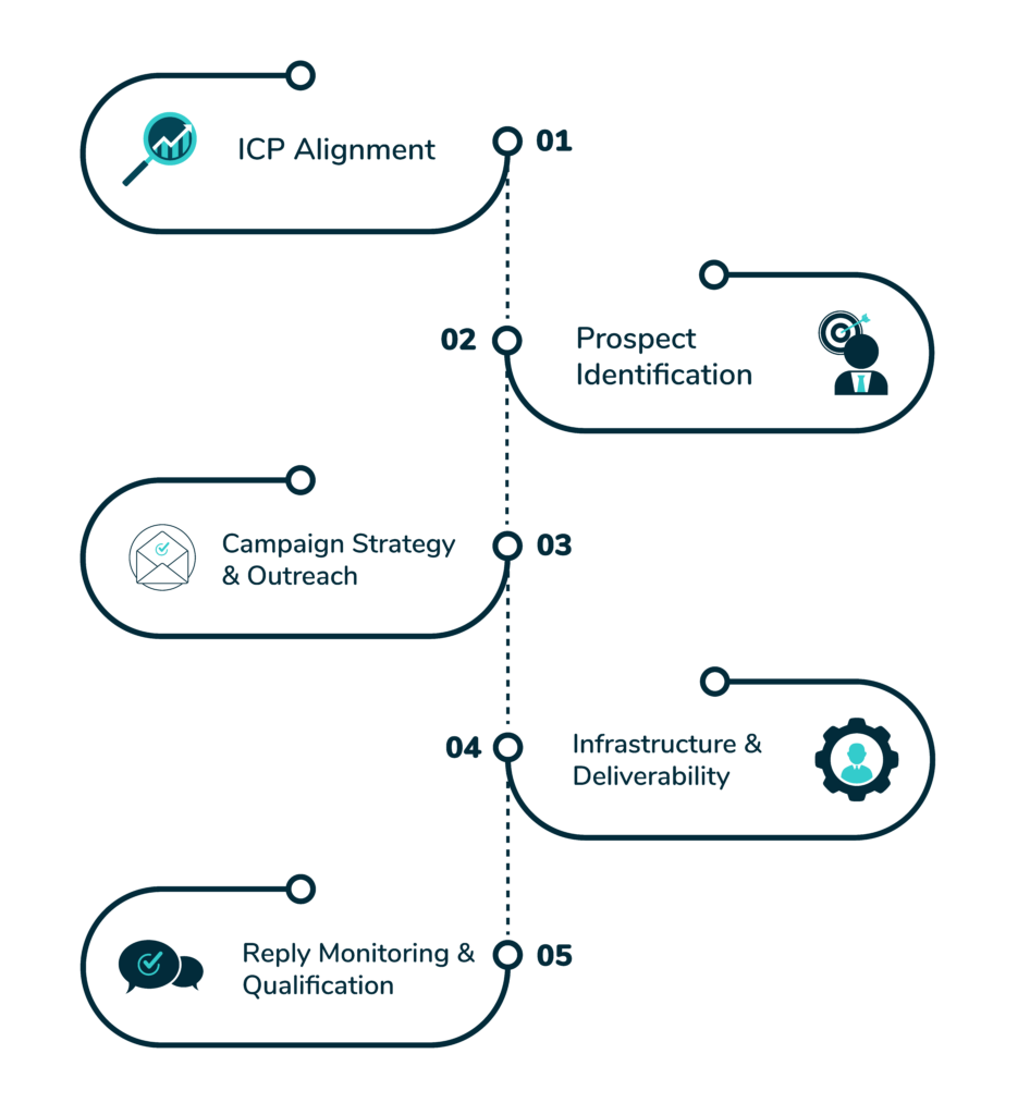 Every campaign begins by defining your Ideal Customer Profile (ICP), the type of company and decision-maker most likely to benefit from your offering.
